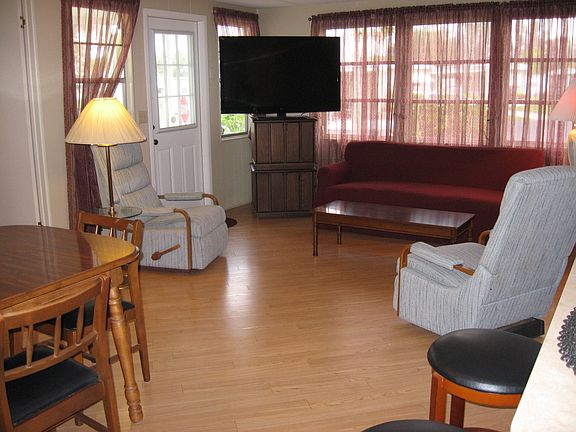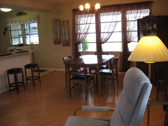 This beautiful home has 1,000 square feet (MOL) of living space and is move-in ready. The square footage excludes screened lanai, laundry room with laundry tub, separate tool area, and patio off the lanai for private sun bathing. Open concept kitchen, living and dining area. Split bedroom floor plan for guest privacy. There are too many upgrades to mention but a few include a newer roofover, hard surface flooring throughout, vinyl siding with skirting, new hot water tank in 2013, new microwave in 2014 with exhaust, and Maytag appliances. Outside there are mature flowering shrubs and gardens with weed barriers and decorative stones. Purchase the home and lot rent is $724. Monthly fee includes trash removal, recycling, water/sewer, lawn mowing and edging. Orange Harbor is an over age 55 resident owned community located close to shopping, restaurants and beaches. Boating/Kayaking/fishing right from docks and piers in the park. Enjoy sitting by the water and watching the large boats pass by. There are sites to sit by the water throughout the park! Buy now directly from the owners and save! Phone 705 874-2083. Email hershkuz@gmail.com to see more pictures.