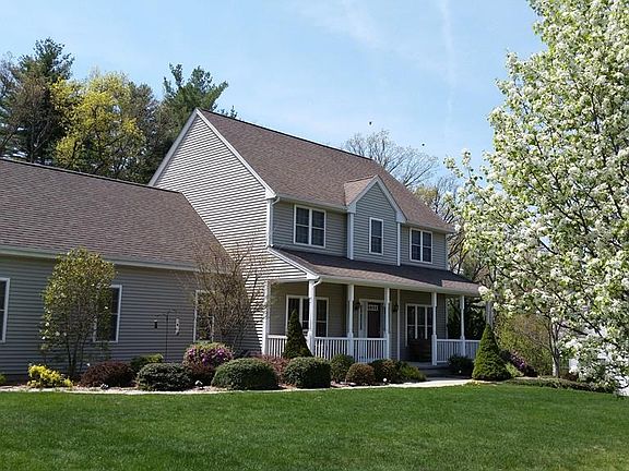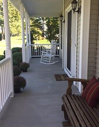 A beautiful 3 / 4 bedroom colonial with the front porch you have always wanted, is now available for you to buy. Just 13 years old and cared for lovingly by it's one owner. This home has everything you need and everything you want. A pretty eat in kitchen open to a sweet family room. A 2 car garage, mud hall, 1st floor laundry, large closets, 2.5 baths, hardwood floors, gas fireplace, a deck and a yard that backs up to the woods. A nice sized fenced area for your beloved pet too.