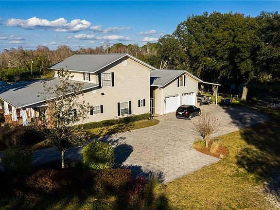 This is a one of a kind property where you're conveniently located minutes drive in to town but are situated on over 2.5 acres of land with NO HOA and a mother in law unit. Bring your horses, farm animals, RVs, toys and anything else you can think of and have plenty of room to store it all. The property boasts a private gate that leads you on down your tree lined pavered driveway to your new home with a metal roof, salt pool, full house Generac generator, 2 car garage next to the house as well as a 3rd detached garage with attached car port and stable for you to house your horse as well as the property having a shallow well for irrigation. The main house will greet you with a large covered front porch leading in to the home which has high ceilings and opens up to a large great room on one side with a tray ceiling and lots of natural light. There is a private office right across from this with lots of space to have a great working from home area. The master bedroom is located on the 1st level with a walk in closet and an attached spa like bathroom with double vanities, granite countertops, walk in shower and soak in tub. The other bedrooms and bathroom in the main house are on the second level and share the other bathrooms. The chefs kitchen boasts a large pantry, top of the line Viking cook top and hood vent, upgraded cabinets, granite countertops with an island and peninsular making it a great entertaining space that opens out to your dining room. The detached mother in law suite has its own entrance, bathroom and kitchenette which is open concept to the living / sleeping space so that family or friends have their own privacy or if you wanted to rent it they would be separated from the main house. The salt water pool has a dark pebble finish giving it a lagoon look and is fully screened in with lots of privacy. These pieces of property do not come on the market often so come and take a look.