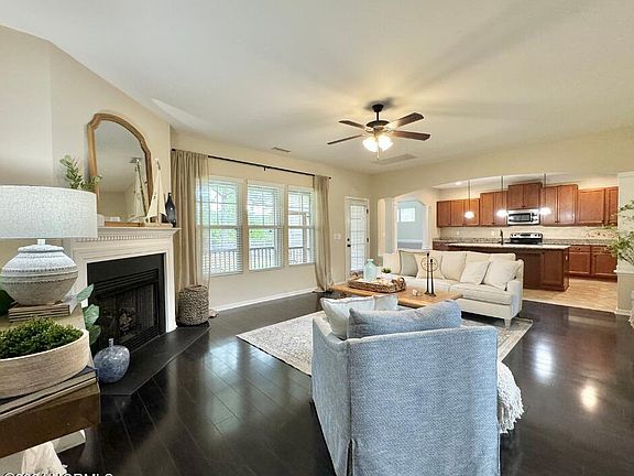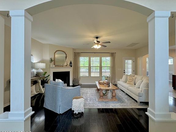 Found in the desirable community of Village At Folkstone, this 5 Bedroom and 4 Full Bathroom Floor Plan displays timeless beauty at every corner. You are immediately greeted with a bright and airy atmosphere made possible by the soaring ceiling of the foyer. Warmth and comfort collide in the inviting living room, anchored by a corner fireplace perfect for cozy evenings spent together. However, the true heart of the home is the well-appointed kitchen, complete with modern stainless-steel appliances, ample granite countertops, copious cabinetry, and an oversized island with breakfast bar for casual dining. Adjacent to the kitchen, the dining area offers plenty of room for gatherings.