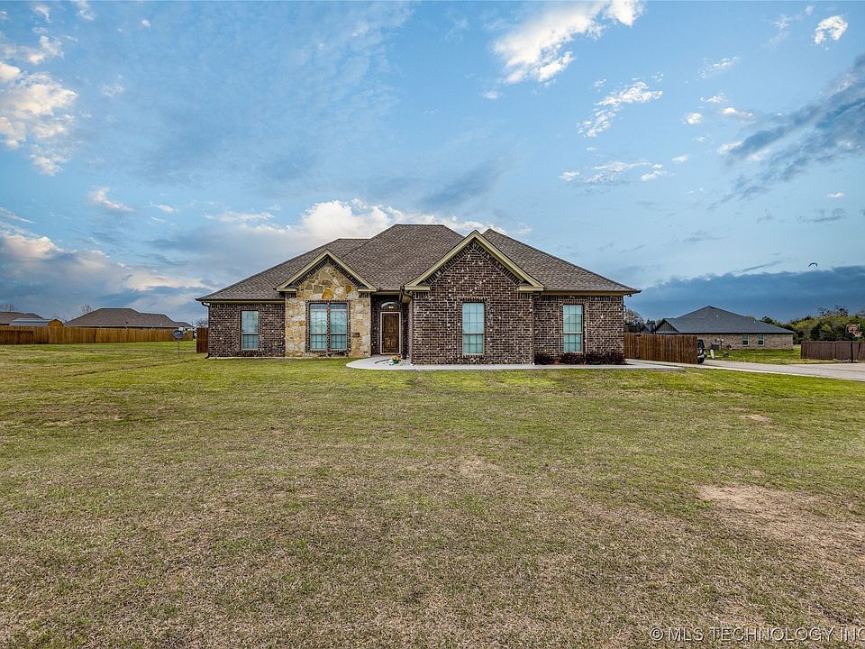 Custom built only 5 years ago, this move-in ready home sits on a spacious corner lot in Regal Ridge subdivision. This subdivision has no thru streets (low traffic) and is situated in Durant school district. The large backyard is fully privacy fenced and features a storm shelter, swimming pool, deck, and extended patio...perfect AND just in time for summer! Inside the home you'll find wood look tile (durable and easy to maintain!), high ceilings, plenty of storage, and a true 4 bedroom floor plan. All of this and less than 8 miles to Lake Texoma! What more could you want? This home is clean, well-maintained, and ready for its new owner.