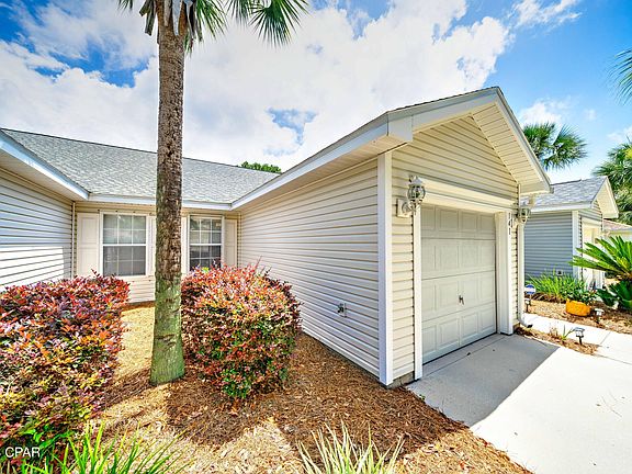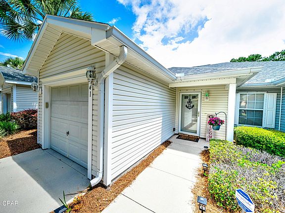'CURRENTLY UNDER CONTRACT, SELLER WILLING TO CONSIDER BACK UP OFFERS' **SELLER WILL CREDIT BUYER $5,000 at closing with a full price offer of the recently reduced price of $315,000** This beautiful and well maintained 2 bedroom/2 bath townhome is neighborhood living at its best in the community of Palmetto Trace. The home has a new roof, HVAC, hurricane shutters and plenty of storage - check out all the custom cabinets in the single car garage! The screened-in back porch is also new and oh so quiet and peaceful overlooking the preserve behind the home. Master bedroom has a barn door to the bathroom with double vanities and tile shower. The flooring is tile and quality LVP and the washer/dryer set convey along with the island and stand alone cabinetry in the kitchen. The community has two pools, sidewalks throughout lined with street lamps and gorgeous live oak trees. You can even ride your golf cart to dine, shop or be entertained at everything Pier Park and the west end of Panama City Beach has to offer! This particular town home is in the middle of the back row in the neighborhood. Some additional furnishings may convey with acceptable offer.