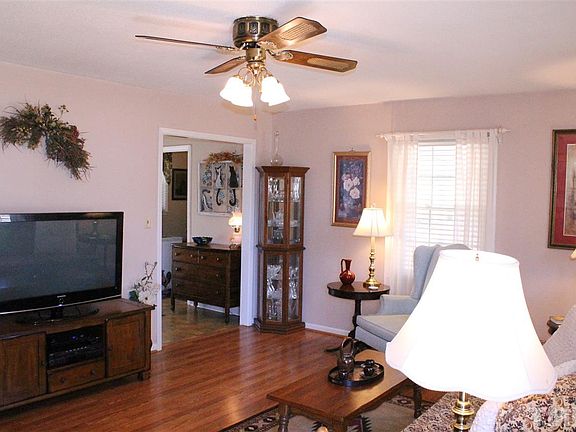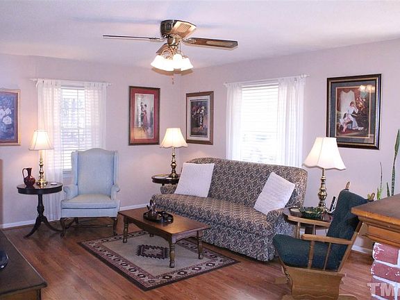 NO Subdivision, OVER 2.5 Acres~MUST SEE UPDATES in this BRICK Ranch with attached CARPORT, Detached GARAGE and Rocking Chair front porch~LOADS of UPDATED Laminate HARDWOODS~Bright Family Room with TONS Of space~OPEN Kitchen with Refinished cabinets, Handy Eat at Bar~ROOMY WALK IN Laundry Room~3 spacious bedrooms~NEW ROOF shingles & Windows on home approx 2005 per seller~DOUBLE Patios~LARGE Level Lot on ACREAGE~HORSES Ok~GOLF lovers Delight..Walk to the Country Club~Convenient to shopping, I-40 and I-95.