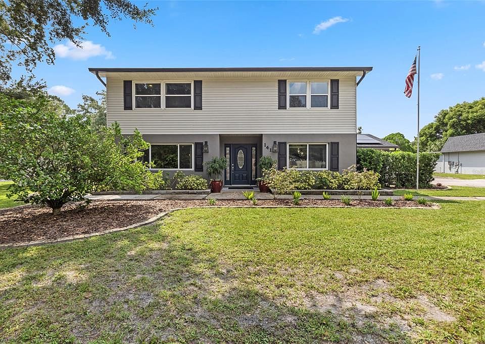 Welcome to this beautifully updated 5-bedroom, 4-bathroom home in the highly desirable Tuscawilla Community! Perfect for large families and gatherings, this home offers an EXPANSIVE FLOOR PLAN, including a newly added bonus bedroom/IN-LAW SUITE with an ensuite bathroom. The kitchen boasts granite counters, stainless steel appliances, and an adjacent Dining Room with CUSTOM floor-to-ceiling shelving perfect for a coffee bar. The enclosed sunroom boasts custom doors that open fully to reveal a spacious backyard oasis. This retreat features a new vinyl privacy fence, an above-ground pool, a spa, an outdoor shower, a fire pit with a built-in bench, and a 20'x12' barn equipped with electricity—ideal for storing a golf cart, lawn mower, or setting up a workshop. Enjoy energy savings with newly installed solar panels, and rest easy knowing the roof was replaced in 2017 and the HVAC has been recently updated as well. Situated on nearly a half-acre corner lot, this centrally located gem is close to everything, including top-rated schools. Don’t wait to make this house your home! Schedule your private showing today!