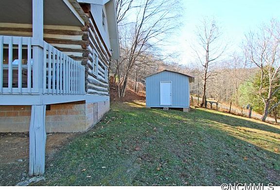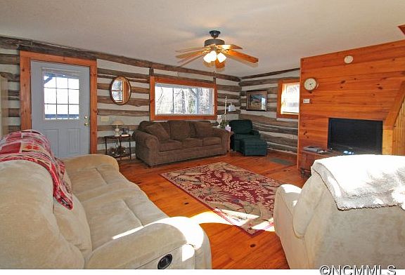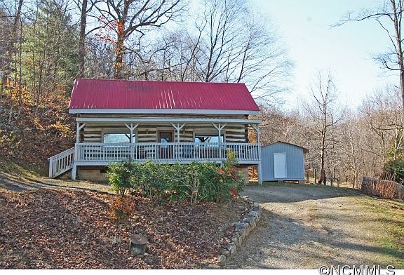 Fantastic Price on this Cozy Log Cabin, first built in the 1800's, assembled again in 1996, with 2 bedrooms, 2 1/2 baths, open floor plan, central heat and air, large covered front deck with long range views, outbuilding, and all Located just minutes from Downtown Waynesville. This Cabin will not last long.