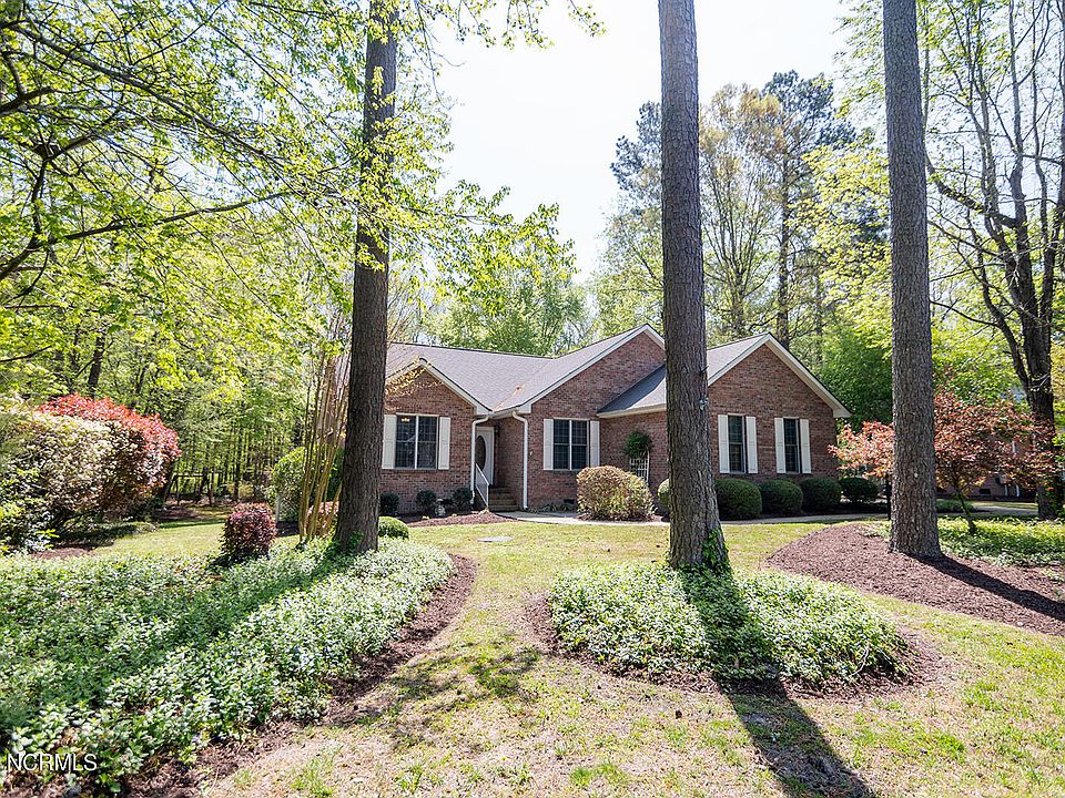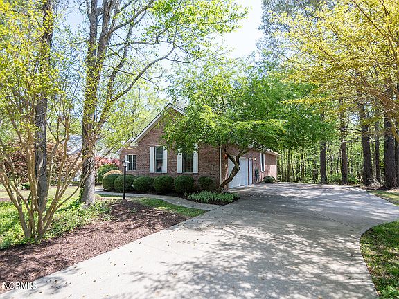 This beautiful 3-bedroom, 2-bath brick home is located in The Albemarle Plantation Community on the pristine Albemarle Sound. Key features include a spacious sun room providing ample natural light creating a great space to enjoy your morning coffee or relax with a book. The kitchen has been updated with modern appliances, creating a functional and inviting space for cooking and meal preparation. A generous master bedroom with n suite bathroom offering a soaking tub, walk-in shower, dual sinks, and a large walk-in closet. The private study/office is a great private work space or can also be used as a formal dining room with a great view of the wooded front yard. The living room features a gas log fireplace, creating a cozy ambiance but also provides a convenient and efficient source of heat during colder months. The deck area includes a sunken hot tub allowing for relaxation, and a gas grill connected to the resident gas line for the perfect outdoor dinner. The property's crawl space is equipped with a dehumidifier, which helps maintain optimal humidity levels, preventing moisture related issues. An ample two-car garage with workbench and utility sink makes for a good work or hobby space. A well lit attic with pull-down stairs allows for additional storage and easy retrieval with the unique large bucket-pulley system. Overall, this charming home offers a comfortable living space with appealing features, a wonderful water-front community with a range of amenities and activities making it a comfortable and luxurious retreat home! This community offers endless opportunities to enjoy life on the water. Their stunning amenities boast one of the largest private full-service, deep water marinas on the east coast and a private waterfront world-class golf course designed by Dan Maples. With tennis courts, fitness facility, community center, community gardens, and several large dog parks, residents always have something to look forward too.