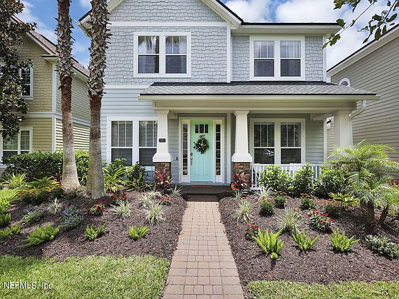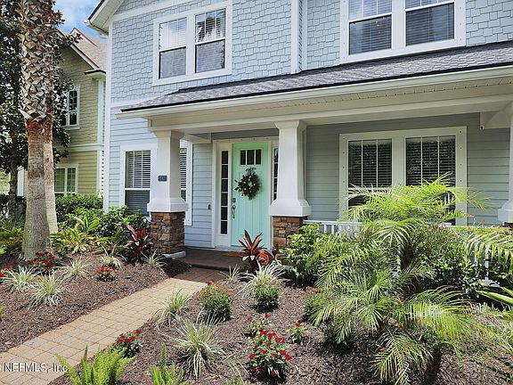 Straight out of a Coastal Living magazine, this home is a stunner with outstanding value! Embrace the opportunity to own a Toll Brothers home that rivals a model while enjoying the convenience of being just steps away from 1st class amenities. This turnkey property is ready for you to move in & enjoy! With 4 bedrooms (all upstairs) +office, & flex room, there's plenty of space for everyone! Imagine enjoying your morning coffee or gathering with friends on your porch. The low maintenance yard with lovely flower beds surrounding the home adds to its charm. Nestled in the gated Coastal Oaks neighborhood within the master community of Nocatee, you'll have access to a private clubhouse & array of exciting amenities including 2 waterparks, walking/biking trails, fitness centers & dog parks. Upgrades include wood flooring throughout the downstairs, brand new LVP stairs, the most incredible owner's suite custom closet, updated light fixtures, water softener with reverse osmosis & so much more! This is a must see!