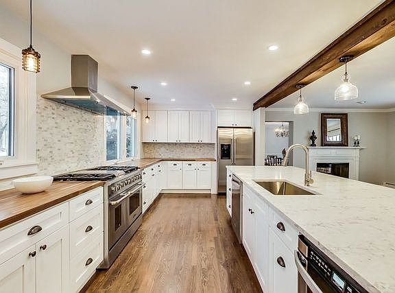 This picture perfect home has undergone a complete transformation! Now seamlessly blended with a new open floor plan that brings living room with fireplace, dining and kitchen into one large space. Perfect for entertaining, the kitchen overlooks the family room with a fireplace and a lovely view to the colorful perennial gardens, all situated on an acre lot. This home sparkles with all that is new and updated! LOTS OF SUNLIGHT! Gleaming hardwood flooring; stunning NEW white custom cabinets with huge island, farm sink and COMMERCIAL GRADE STAINLESS STEEL APPLIANCES. Private master, finished basement and a 3 car garage! Many upgrades in the last 6 yrs include, roof and siding, A/C, boiler, Pella windows and sump pump. Minutes to train, expressway and shopping! All this and AWARD WINNING BARRINGTON SCHOOLS!