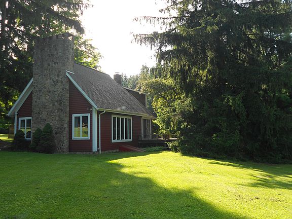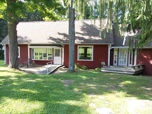 A little piece of heaven on 55 acres. This 4 bedroom, 2 bath custom built home near Clear Creek State Park is completely private, with a spring fed pond and lake, well maintained barn and 2 car garage. The charming residence includes 2 grand wood burning fireplaces, large cathedral ceilinged living room, a wood paneled family room and large windows overlooking the lake. Also, free gas. The perfect country retreat.