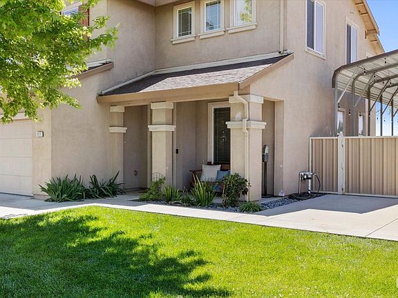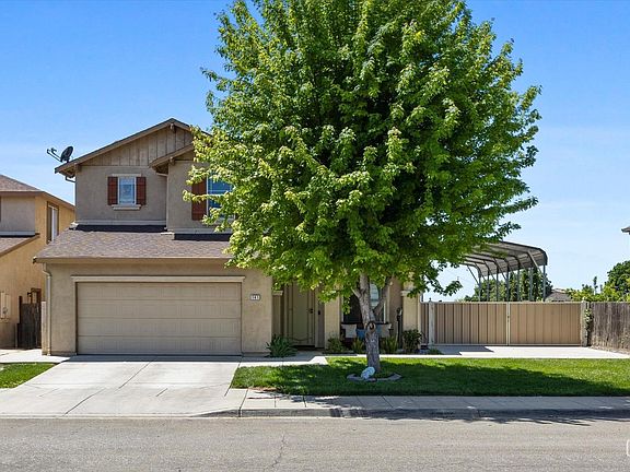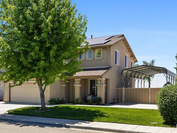 Welcome to your dream home! This immaculate 2-story residence offers 5 bedrooms and 2.5 bathrooms, ensuring ample space for your family to thrive. The open floor plan seamlessly integrates living spaces adorned with pebble tech and tile flooring downstairs, creating sophistication and ease. Retreat to the expansive primary suite boasting a generous walk-in closet and a lavish bathroom with dual vanity sinks, a walk-in shower, and a rejuvenating bathtub. Outside, the low maintenance backyard beckons with ample space, a playground, and a luxurious pool and spa for relaxation and entertainment. Covered RV parking adds convenience and practicality to this impressive package. Plus with solar, enjoy eco-friendly living at it's finest. Don't miss the chance to call this exquisite property home!