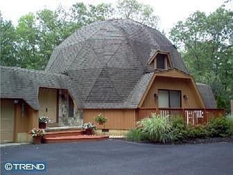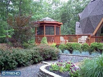 Offered substantially below its appraised value! Energy Efficient Geodesic Dome. Situated on a 4.11 wooded acre lot the possibilities are endless...build your off spring or in-laws a home and still have privacy, no subdivision required. Custom built with lots of light and open space. The living room features a full stone wall with gas fireplace and hardwood floors. The dining room has floor to ceiling glass wall with southern exposure and the floor is a passive solar collector. The master suite is on the first floor with sliding doors that lead to a deck with magnificent views. Enjoy the solitude and tranquility of the exterior, there are two stone patios, screened gazebo, multi-tiered back deck and front deck. Exterior garden lighting a three zone drip irrigation system complete the exterior. The home was built for energy efficiency. Tucked away in solitude but yet within an hour of Philadelphia, Atlantic City Princeton.