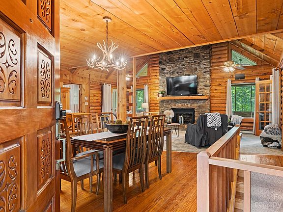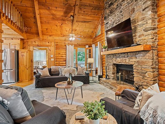 *Under Contract after receiving multiple offers.* Escape to the tranquility of Lake Lure with this charming log cabin nestled amidst 2.9 wooded acres. Offering access to two picturesque lakes, fishing, walking trails & more, this Riverbend Community home is an idyllic opportunity to embrace nature's beauty. Boasting a cozy loft, stunning custom stone fireplace, 18' vaulted ceilings, an expansive porch and TWO sunrooms, you're invited to unwind and enjoy the rustic charm it offers. The lower level offers additional living space and potential for a more formal 3rd bedroom (3 bd septic - buyer to verify). It is currently outfitted as a studio with a full bed & access to the one car garage. As a vacation rental and second home, 141 Rabbits Ln comes turn key: ALL furnishings convey. A new roof was installed in 2020 and a new HVAC in 2018. Schedule a showing today to make this home your own!