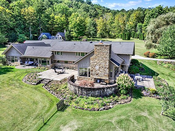 Introducing a masterpiece of a home in the heart of the Laurel Highlands located in Rector, Ligonier Township, set on a sprawling 35.36 acres of picturesque land. This luxurious estate boasts a spacious 4-bedroom, 4-full bath residence with 2 half baths, offering the epitome of comfort and style. As you step inside you are greeted with a ton of natural light. The living areas feature stunning stone and hardwood floors with elegant finishes throughout, perfect for entertaining family and friends. This property caters to the creative spirit with a one-of-a-kind guest house. Imagine having your own 1-bed, 1-bath sanctuary complete with an attached art studio! There are several options for enjoying the outdoors on the multiple patios that flow seamlessly from the house.