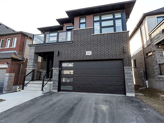 Welcome to 141 Ridgemount St Kitchener! Luxurious modern-style, only 2.5 years old home, built by Activa Homes, located in the desirable Doon South area. This home features 4 bedrooms, 4 baths, and a double car garage. The open-concept floor plan boasts 9ft ceilings, a great room with upgraded elegant laminate vinyl flooring, and large windows. The custom kitchen features upgraded cabinets with double drawers, an island with a breakfast bar, a walk-in pantry, granite countertops, and high-end black stainless steel appliances. The main floor also hosts a huge laundry room. The second floor features laminate flooring, a 9' ceiling and a walk-out balcony. The master bedroom is spacious with a walk-in closet and a luxury ensuite bath with a freestanding tub and a glass shower. Additionally, the upper level offers 3 bright, spacious bedrooms and a luxurious 5-piece main bath. Over $100K has been spent on upgrades, including hardwood stairs with glass railing, two-panel 9-foot high doors on both floors, extra-large upgraded windows, glass railing on stairs and balcony, upgraded light fixtures, baseboard, trim, door knobs, and faucets. The partially finished basement with one full bath is ready to be customized. Outside, you'll find a beautiful fenced backyard with a large deck. Just a few minutes from Hwy 401, parks, nature walks, shopping, schools, transit, and more, this is a must-see property!
