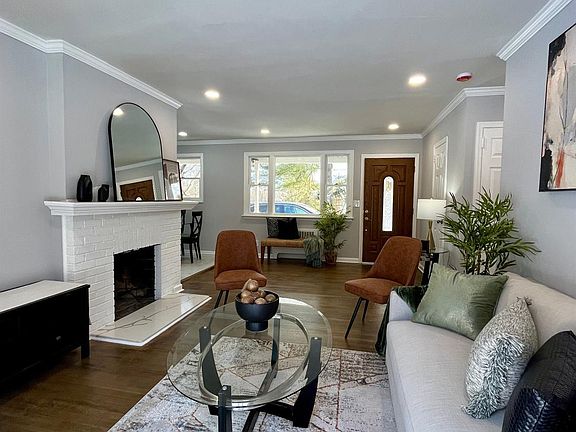 Fantastic starter home, downsize, or condo alternative! Charming, ​ Cozy, ​tastefully fully renovated two-bedroom, two-bath home with a basement and garage is ready to move in​. ​A welcoming porch ​in the front and a full-length patio​ at the back, overlooking an expansive backyard,provide enough space to enjoy the outdoors. ​A bright and airy living room with a wood-burning fireplace, a kitchen ​with all new appliances, plenty of space for dining​, two good-sized bedrooms, and a fully renovated bathroom finishes ​space on the first floor.​ A large open basement provides a large family room space​. There is a laundry room and a full bathroom in the basement. ​Renovations include fresh neutral paint, refinished wood floors, ​fully renovated bathrooms, ​new kitchen cabinets, stainless steel appliances, quartz countertops, and ​a recently replaced water heater. Large yard and patio is perfect for summer barbecues, al fresco dining, or simply basking in the sunshine, this outdoor space is sure to become your favorite spot to unwind. Situated on a lovely property, this home offers tranquility, while still being conveniently located close to highways for easy commuting. Don't miss your chance to make this exceptional property your own.