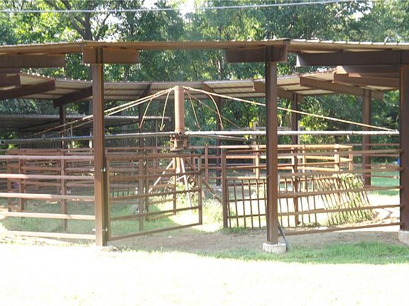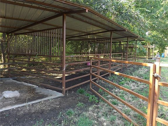 Nice Home with over 1 acre with trees with large garage. Nine Horse stalls with round about walkway. has a dog proof fence. Large garden area split by chain fence, fruit trees and pecan trees on the creek.