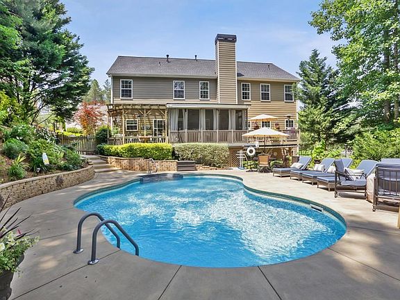 It's summer!! Your own private oasis with salt water, heated pool (so think spring & fall also), outside bar, fire pit, outdoor kitchen, screen porch, deck & at back of property BEYOND the fence is a creek! This one has it all including 2 story stone fireplace, granite/stainless in kitchen, generous master suite, office on main, finished terrace level with bar for entertaining. Don't forget the workshop in the basement also! Surrounded by trees, private & fenced backyard, you may never leave home again as it feels like your mountain house already!