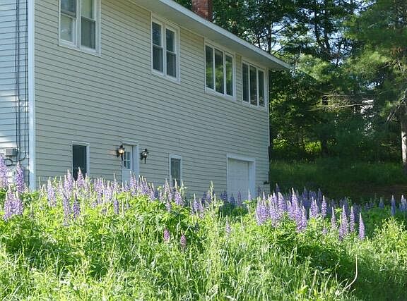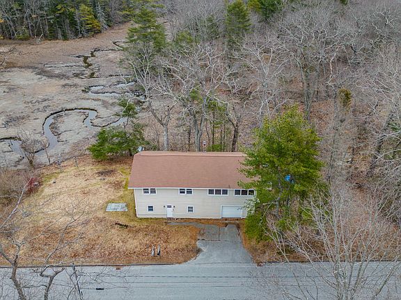 This mid-century vintage home set in a birdwatcher's paradise of 3 acres, features a tidal inlet on the property and is located across the street from beautiful Maquoit Bay. The westerly vista from the front living room window offers glimpses of the bay while the back and side yards (east and north) offer a nature lover's paradise loaded with wildlife. The owner has catalogued over 100 species of birds in the past 10 years - see the slideshow in the video section of the listing for a sample! The entire living space is on the top floor, a true raised ranch (or ranch with a daylight basement on the street-facing side.) Enter the basement door and find a stairway with attached electric stairlift waiting to carry you (or your groceries!) up to the living level. Once on the main floor, you'll enjoy single-level living, two full baths, renovated in recent years, one of which is attached to a front-to-back large bedroom, currently used as an office and nature-watching headquarters. (Note that this floor is gently sloped because it was originally built as a porch with a natural slope for drainage.) Convert this back to a primary bedroom suite or use it as a family room. This large room boasts one of the 2 newer heat pumps. Two additional bedrooms, at opposite ends of the house, offer plenty of options for sleeping. The fully applianced kitchen is vintage mid-century, complete with original green veined Formica countertop for a retro look. The great room offers space for living and dining, a Jotul woodstove insert in the original woodburning fireplace, and a heat pump for cooling and alternative heating. Hardwood floors are in great shape! The lower level has 2 unfinished spaces. One is currently an art studio and the other contains the garage space, the utility room, and open storage. There's a second header in the front, ready for a second garage door if you desire to add one. Low heating costs with 3 types of heat!
