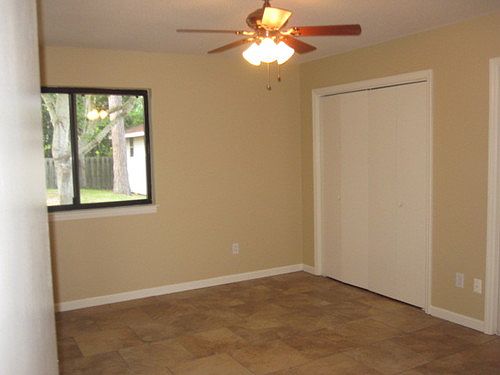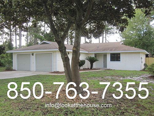 Looking for a great home to raise your family? Look no further, this is the place! Located in a small, quiet family neighborhood with only one road in and out (in other words, very little traffic), this split plan all-electric house sits on a big shady lot. The interior is a fresh neutral color, and ALL of the flooring has been replaced with 20 inch porcelain tile. The kitchen has lots of cabinet and counter space, a range, dishwasher, a side-by-side fridge with water and ice in the door, and a granite bar with pendant lighting that overlooks the main living area. The great room has vaulted ceilings and two sliding glass doors that flank the woodburning fireplace and lead out to a large covered patio. The huge back yard is fully fenced, with gates on both sides (double gate near the driveway, perfect for a boat or rv) and has a large storage shed with a ramp big enough to pull in a riding lawnmower. All three bedrooms are large and have oversized closets (walk-in in the master). The master bath has double vanities and a separate water closet room. Need more? How about an oversized 2 car garage with automatic openers and attic storage, and a heated and cooled utility room with washer/dryer hookups. All of this in a location that puts you just minutes away from the Navy base, Pier Park, and the Gulf.SEARCH "141 RUSTY GANS" ON YOUTUBE FOR A VIDEO TOUR!The address is 141 Rusty Gans drive. Rusty Gans runs off of North Lagoon, between Laurie and Allison. Rusty Gans is a circle, and the house is at the back side of the circle. Small, non-aggressive pets are OK at $20 per month per pet. Sorry, no Section 8. Call 850-763-7355 with any questions. The house is available around October 1. Rental application at www.lookatthehouse.com