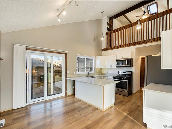 Welcome home to Sunridge. You won't be disappointed in this 3 bedroom, 2 bath + loft patio home nestled in a quiet cul-de-sac and backing to the Highline Canal. Main floor consists of a family room with a gas fireplace and a vaulted ceiling, kitchen with updated cabinets, Stainless Steel appliances and quartz counters and an eating area with access to the fenced in yard, Large primary bedroom with a 3/4 bathroom, walk-in closet and a sliding door with access to the back yard, laundry closet, full bathroom and one additional bedroom with a walk- in closet. Added bonus is the extra large loft with skylights. Fresh paint throughout. Convenient location with easy access to, Children's Hospital, Anshutz Medical Campus, VA Hospital, I-225, I-70, DIA, City Center Park, schools, restaurants, parks, shopping and trails. Don't delay!