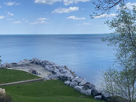 Wonderful condo in desirable Seawall development located on Lake Mighigan. Primary views from both balconies are of mature trees and the beautiful grounds! You notice the new front door with side light as you walk in, lots of storage space throughout the home, natural fireplace in the spacious living room with patio doors to brand new balcony, new stainless appliances, backsplash and quartz countertops in the kitchen. Master bedroom offers large walk-in closet and a door off of the 2nd bedroom leads to fenced in patio area. Attached 2 car garage with loft area for more storage space! Unit is located just steps from the lake! Check out the spacious community patio and gorgeous views!