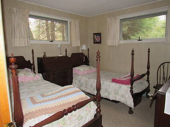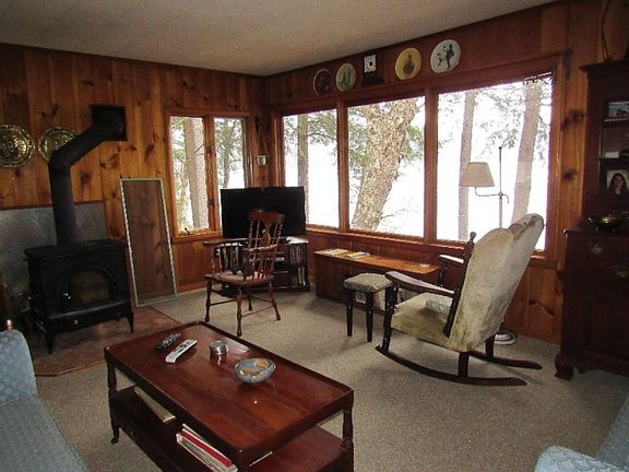This camp is tucked in on a wooded 1-1/2 acre lot that sits on 500 feet of lakefront on Piseco Lake.. This view is very beautiful and the setting is very private. The camp has three bedrooms, one bath, an open kitchen, dining area, and living room with a wood stove. There is a covered deck (that could easily be screened in) with a large storage area on the end of the deck that could be used for additional sleeping area in the warmer months. Or just a storage area The home has a walk-out basement with an oil fired hot air furnace, draws lake water, and has a septic.