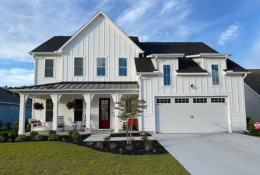 Arlington Farmhouse in desirable Wyndwater neighborhood close to top-rated Topsail Island beaches and half an hour to Wilmington attractions. Four bedroom, 3 1/2 baths with owner suite downstairs. Large bonus room can be used as 5th bedroom or rec room. Private office, upgraded kitchen amenities including gas range and quartz countertops on extra large island. Large storage room above garage and in pull down attic. Large screened in porch with double sliding glass doors leading to professionally landscapes backyard patio with fire pit. Tankless water heater for an endless supply of hot water complete with Culligan water softener.