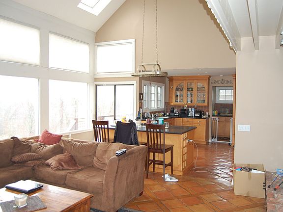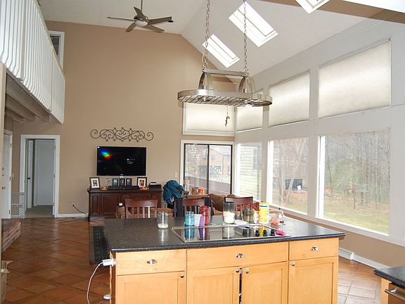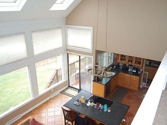 Spacious contemporary Cape Cod style on a gorgeous 2+ acre lot with deck, balcony and patio. Eleven rooms of generous size, lots of closets, dramatic vaulted ceilings, hardwood floors, skylights, walls of glass, walk-out lower level. Kitchen with cherry cabinets. Open floor plan. Finished lower level with lots of space. Very flexible floor plan. 6 rooms can be used as bedrooms. A little updating will go a long way in this under-priced home.