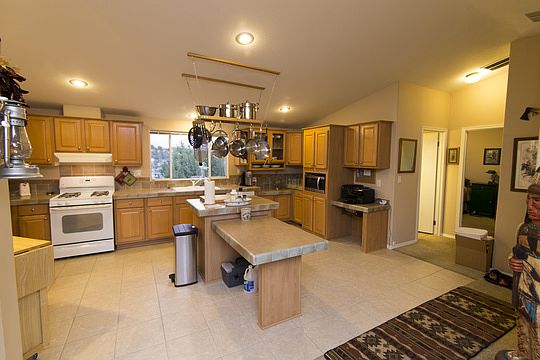 Dream Kitchen! Looking for low maintenance? You've found it! Native mature landscaping offers a lovely setting for this immaculate property. The large gravel driveway has PLENTY of parking, both in front and back! Oversized fully-finished 2-car garage tucked away with a covered breezeway to the house. Come home to an open living area, split-bedroom floor plan with generous closets, lofty ceiling in the living area, and a magnificent kitchen! Kitchen sink overlooks the front of the property and it's beautiful view. Relax in your master suite bedroom and bathroom, with double sinks, walk-in closet and extra large bathtub. Prepare to be pleasantly surprised by all the extras not listed here...call to schedule a showing!