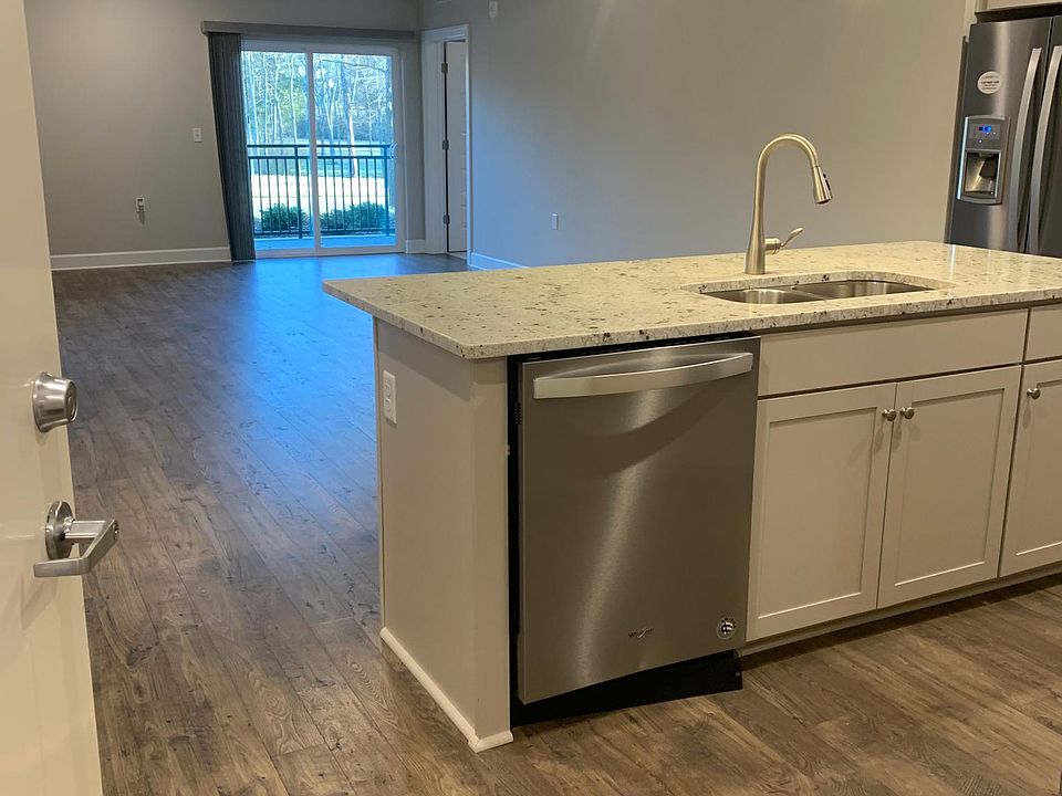 New condo in unique 55+ community. Convenient location adjacent to Hendersonville Library and Greenway, 10 minute walk to shopping and dining at The Streets of Indian Lake, and quick access to downtown Nashville via Vietnam Vets Blvd. to I-65. Private garage and assigned parking with ample guest parking. Separate storage rooms available at additional cost. All first floor living, unit is steps from private garage inside the building, mailroom, lobby, sitting room with fireplace, community room, patio, grill and storage room. Two bedrooms, two baths, open floor plan. Kitchen has all Whirlpool stainless steel appliances; refrigerator, dishwasher, disposal, microwave and gas range. Kitchen has granite countertops, upgraded Moen faucets, abundant 42" cabinet storage, large walk-in pantry, island with room to seat four and laminate hardwood floor throughout kitchen, dining and living room. Laundry room with Whirlpool washer & gas dryer. Dehumidifier in kitchen/living room area. Private balcony off living room overlooking Indian Lake Greenway with small heated storage room and gas water heater. Safety and security for peace of mind; access controlled entry into building, call box in outer foyer for guest entry, sprinklers work independently in each room, a building wide fire alarm as well as carbon monoxide and smoke detectors throughout. Master suite with sitting area, his and her walk-in closets, double vanity, oversized shower with built-in seat, make-up vanity and linen closet. Carpet in bedrooms, tile in bathrooms and laundry room. Second bedroom with walk-in closet. Second full bath with tub/shower combo. Custom plantation shutters in bedrooms, vertical blinds in living room. Community room, patio with lounge chairs, tables and bar to seat 15 guests and gas grill. Common sitting room with gas fireplace and lending library, guest entry foyer with callbox. Valet at-door garbage pick-up several times weekly. One year lease required. Renter must comply with all building HOA rules and regulations including age (55+), pet policy, smoking, parking, etc and will be supplied with a copy of the CC&R's (covenants, conditions and restrictions). Owner will pay monthly HOA fees. Renter will be responsible for reimbursing owner the amount of any fines issued by the HOA for non-compliance of restrictions. Renter is responsible for all utilities; electric, gas, water, phone, cable and internet. Security deposit of $1950 due at signing. Income requirement - must have three times the rent in total household income (before taxes). No smoking allowed in unit or building. Up to two small pets permitted, dogs up to 35 pounds, non-aggressive breeds only, with a $350 non-refundable deposit.