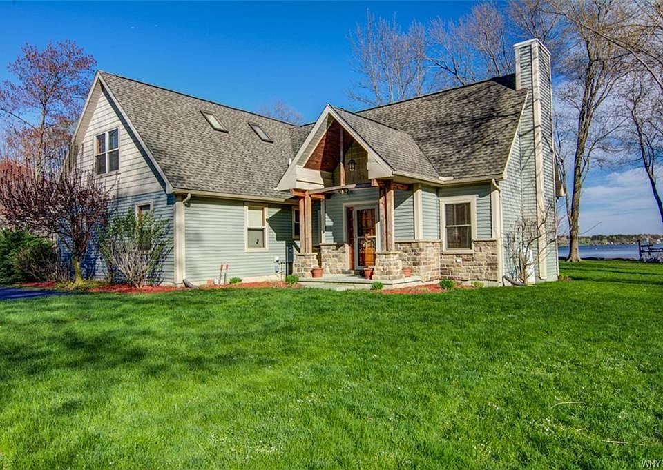 Finally! A home as stunning as the grounds it occupies! Situated on over an acre of land on the highly coveted North End of Chautauqua in a private resort like setting and sandy bottom beds. This beautifully remodeled home greets you with a stately covered porch, stone foyer and caramel stained maple hardwoods and wall-to-wall shelving throughout the Dining and Living rm. The open floor plan features a breathtaking 20' tall dry-stacked stone fireplace in the cathedral ceiling Great Rm viewable through first and second floors. Kitchen and baths feature granite countertops, Martha Stewart Living hardware, and brand new stainless steel appliances. Located on over 100' of lake frontage, this gorgeous home will make you want to stay year-round! Ask your agent about the attached features sheet.