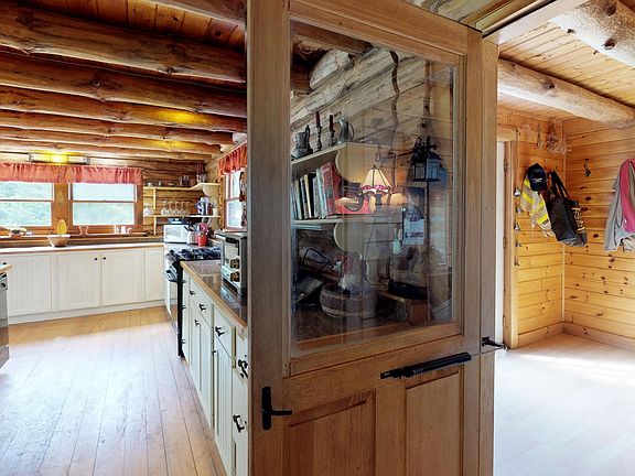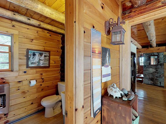 Enjoy the best of country life from this beautifully designed contemporary log home with 5 private acres of land and breathtaking views of Seven Tree Pond! Enjoy the 1st floor open concept design which encompasses the kicthen, dining and large living room. Massive fieldstone chimney with wood stove insert will be the central gathering point for all family/friend gatherings! 1st floor living option with large 1st floor bedroom w/en-suite bath and closet. Additional 2nd floor bedroom w/en-suite bath and large sleeping loft area to accomodate all your visiting guests. During the summer months, you'll love spending time on the front deck and enjoying all the views of Seven Tree Pond and the hills beyond!
