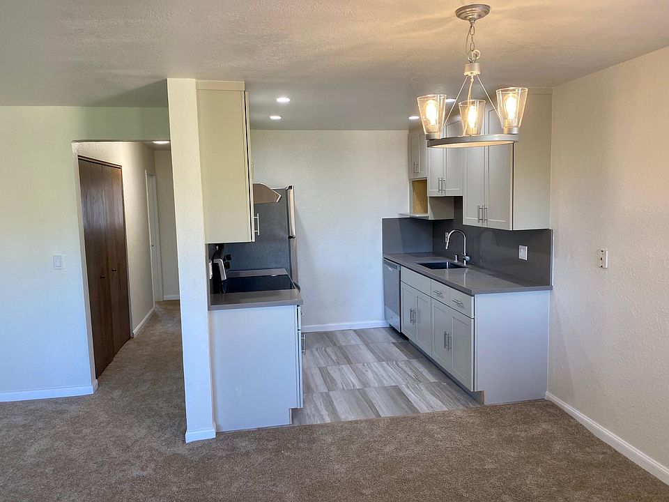 Completely re-modeled condo in Warm Springs for rent. Brand new kitchen, guest / master bathrooms. Brand new appliances. Brand new carpet, tiles and painting. Brand new furnace and central air conditioning. This unit is located on the 3rd floor. Detached garage is on the 1st floor. Please contact me for appointments to view the property. Owner is responsible for water fees. Renter is responsible for other utilities including electricity, gas, waste. No smoking please.