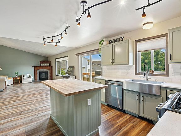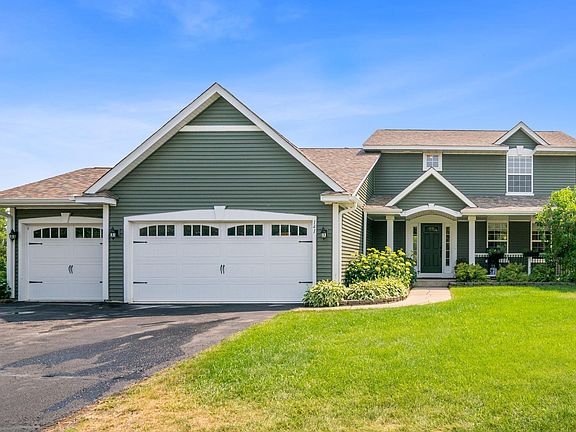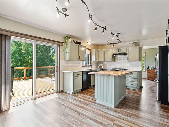 Welcome home to this like new 3BR, 3BA walkout 2 story located in a cul-de-sac. Brand new roof & siding in 2019 and a kitchen redo in 2023 compete w/butcher block island, tile backsplash & quartz countertops. Other features are an open kitchen, living, and great room concept w/a gas fireplace with a walnut accent as well as 2 different flex rooms on the main level complete with a generous sized mud/laundry room all finished w/new luxury vinyl flooring. 3 bedrooms upstairs w/full master suite. The outdoors features several landscaping highlights w/stone stairway, flower garden path, large deck and covered front porch. Heated, insulated & epoxy floored 3 stall garage with newer insulated doors, and newer furnace & A/C. The lower level is ready for your finishing touches.