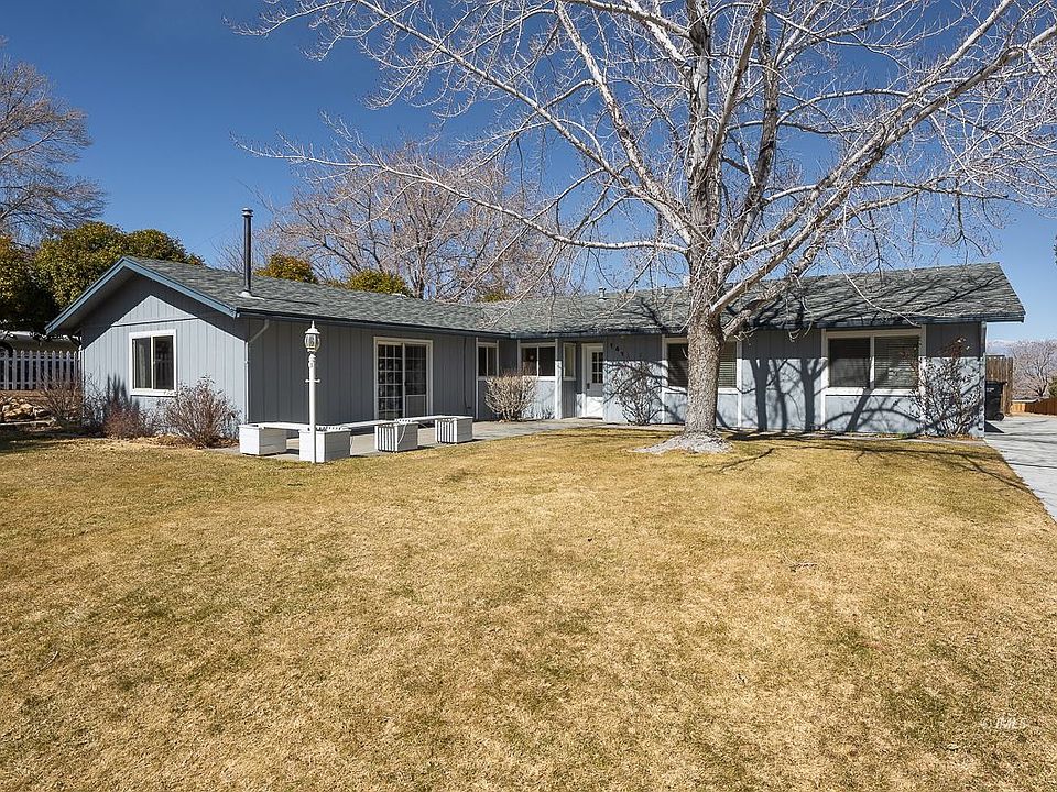 Spacious 4 bedroom home. This property has been well cared for with many upgrades and recent improvements. Newer driveway, dual pane windows, plank vinyl flooring, hot water heater, MasterCool evaporative cooler, newer furnace, exterior painted three months ago. The light and bright kitchen has been remodeled, along with the baths. Generous master bedroom with walk in closet. There is an enormous, finished shop/garage with two large doors 12' wide by 7' 5" tall. It is heated with a kerosene heater and has a 1/2 bath. This is a car enthusiasts dream! There is room for six to eight cars or trucks depending on their length. The motorhome port will house up to a 36 foot unit. Additional separate one car garage. 24 panel solar array. Amazing property!
