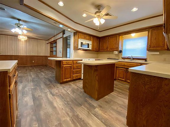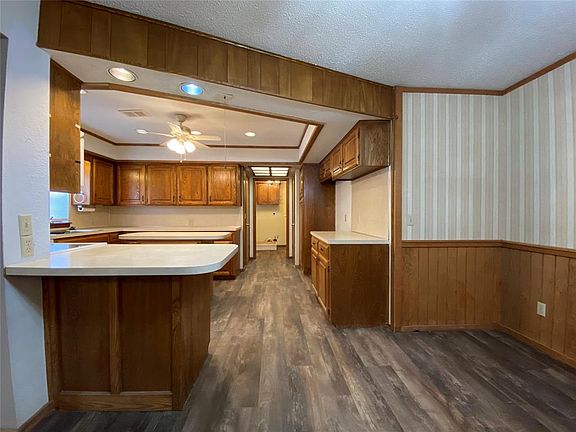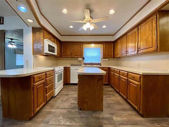 NEW FLOORING INSTALLED AS OF 2/2024 Newer amenities include: Extra heavy comp roof was replaced in 2020, AC/Heater replaced 5/9/22. Lift for Cellar Door was applied in 2015, & FP insert was replaced. The master shower/tub was replaced as a walk-in, tiled shower and the vanity was replaced with granite top and new fixtures. Sewer line has been replaced. HUGE master and HUGE living area, formal dining plus an office and 4 bedrooms & 3 baths make this an extraordinary buy! PLUS you get a 2 car garage with a SHOP and an in-ground storm shelter. Extra parking everywhere. Lovely back yard and a breezeway between the house and the garage that makes for wonderful sitting areas in the summer. Buyer to verify all info. Listing agent, Lic. #108322, is kin to owner.
