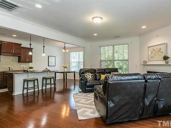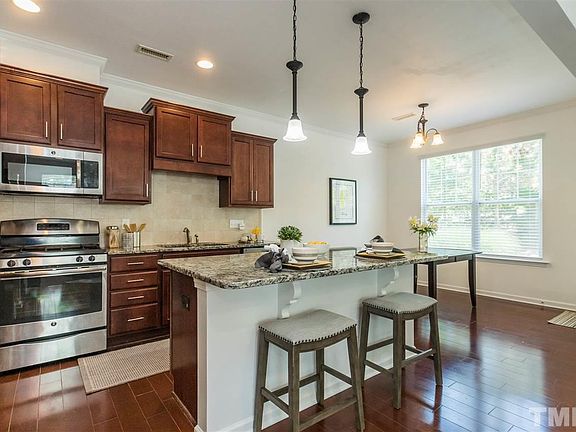 Move in ready end-unit Mimosa plan by M/I Homes in desirable West Cary! Energy Star certified & 30 yr structural wrnty. This 3bd, 2.5ba lives like a house w/open flr plan & upgraded hdwd flrs. Kitchen w/granite, stainless appliances inc. gas range, pendant lights, large island w/brkfst bar & tile backsplash. Liv rm w/gas FP & 9' ceiling, screened porch, large bedrms, low HOA! Fresh paint & new carpet, 2-car garage, storage, 1 mile to retail/grocery/restaurants, minutes to RTP, RDU, 540 & 55, don't wait!