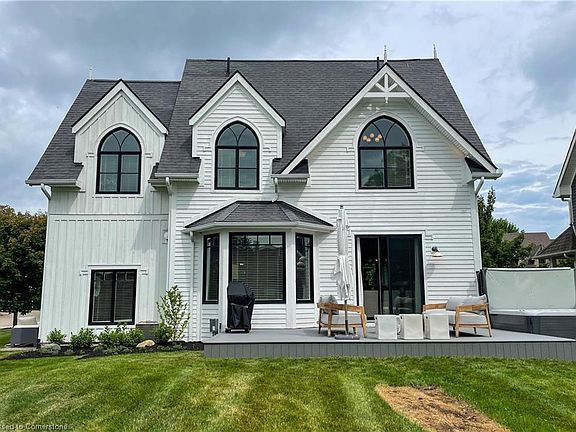 EXCLUSIVE SNOWBRIDGE WITH DESIGNER TOUCHES! Step into sheer elegance with this exceptional custom-built home, perfectly situated in the heart of Historic Snowbridge. This enchanting community, adjacent to the picturesque Monterra Golf Course, is just a short stroll or on-demand shuttle ride away from the iconic Blue Mountain Village & Ski Resort. Meticulously crafted by a renowned interior designer, this 2450sqft residence exudes luxury & sophistication with 4 bedrms & 3.5 bathrms. Upon entering, you’ll be immediately captivated by the breathtaking ski hill vistas visible from both the front porch & the primary suite. Inside, the open-concept great room is a centerpiece of refined living, boasting a stone fireplace & bespoke cabinetry that seamlessly flow into the kitchen. This culinary haven is outfitted with top-of-the-line appliances, a dual-zone wine cooler, & an expansive breakfast bar. No detail has been overlooked in designing this home, from the meticulously curated custom light fixtures to the lavish primary suite. This private retreat offers a grand foyer, a marble-topped desk, soaring vaulted ceilings, & an opulent dressing room tailored to perfection. The indulgent 5pc ensuite bath is the epitome of luxury, featuring a jetted jacuzzi tub & a glass-enclosed shower, designed for relaxation. The fully finished lower level offers a cozy family room, a 4th bedrm, & a thoughtfully designed mudroom. The basement’s 4th bathrm is a spa-like retreat in itself, with heated floors & a steam shower, while the space is pre-plumbed for a wet bar. Outdoors, the home continues to impress with a charming covered front porch, & a brand-new maintenance-free back deck. An advanced irrigation system & security cameras enhance convenience & peace of mind. The garage is a model of efficiency, featuring a custom vinyl wall organization system, overhead storage, & direct access to the lower mudroom. Embrace the pinnacle of luxury living in this extraordinary Snowbridge treasure.