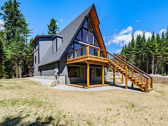 This gorgeous contemporary A Frame chalet sits on the edge of town across from the Bethel Inn Golf Course. A deeded private trail out your back door connecting you to the Bethel Village Trails and Gould Academy, An easy walk to downtown Bethel and just 6 miles to Sunday River Ski Resort. This is a fabulous location with no covenants or HOA's. The perfect mix of the nostalgic A Frame design with a modern rustic flair. A giant glass wall faces southeast maximizing the sun exposure and creating a light and bright interior. The four bedrooms are spread throughout the 3 levels adding privacy for all. Boasting two primary suites on both the first and second floors. A wide-open main floor with a gas burning fireplace, large kitchen with extra-long island as well as a separate dining area. A second family room is located on the lower level with two more bedrooms and a full bath. The daylight basement allows for direct access into the lower level as well as on the main floor entrance into the mudroom. A quiet, private location in the middle of all the action!