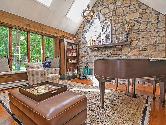 - Fam Dscrp: Skylight, Ceiling - Cathedral, Fireplace, Window(s) - Picture, Main Level, Wood / Coal / Pellet Stove, Flooring - Wood, Sunken, Lighting - Pendant
