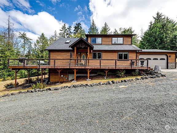 This 2816 sq ft, 3-bed, 2-bath home offers space and modern comforts. Featuring a spacious and well-equipped kitchen, a huge walk-out basement with added plumbing, a large laundry room and a jacuzzi tub in the primary bathroom. The property includes a 576 sq ft 2-car attached garage and a 768 sq ft heated/cooled detached garage/workshop perfect for a business, fitness room, etc. Features include dedicated high-speed internet, a 3-year-old heat pump, and dedicated HVAC in the master and detached workshop. Nestled in a serene pine and cedar forest, it’s just 8 mins to town, 10 mins to hiking trails, Olympic National Forest, shopping, dining and the beach. The low-maintenance yard ensures easy upkeep. No HOA! Don’t miss this rare find!