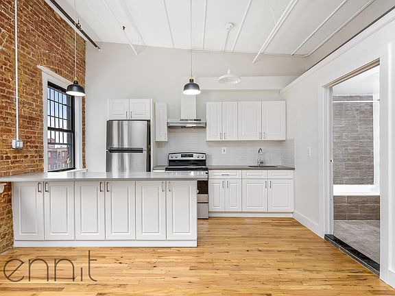 Tall Ceiling loft, restored awesome loft with lots of character, TONS OF WINDOWS! Tons of windows and brand new appliances, Amazing loft feel, factory building with Vaulted Ceiling, Big windows and GIGANTIC Living area. Perfect for Live work space or in home studio for photoshoots! OPEN SPACE LOFT, New Hardwood Floors, fully Tiled bathrooms with deep Tub. Shower, Vanity and new sink. Right off the G train Bedford Nostrand Ave's stop off Myrtle Ave and its Amazing night life, bars and restaurants steps away! Laundry Room in the building Loft Factory loft building Rooftop / Roof deck access
