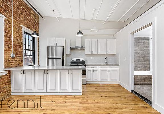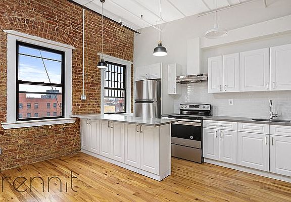 Your Dream Loft Come to Life! Massive, tastefully converted 2 bedroom loft on the border of Clinton Hill and Bed Stuy. Perfect combination of tasteful updates and rustic industrial charm, preserving the space's character and history. 7 windows across, all with original pediments and brick arches still in place. The exposed brick is mottled and variegated to have wonderful texture. The layered colors, shapes, and textures of the baked clay is a work of art and a piece of history unto itself. Large open kitchen layout with exceptionally long stone island running the width of the room. The island and ample counter top space is a soothing slate grey stone, and the abundant kitchen cabinetry is a muted white. Two large windows allow light and air to flow, completing the open feel of the kitchen design. . Oversized livingroom with 4 large windows adorned with attractive brick arches and colorful patterning. While standing at the window in the living room, one can cannot help but toggle between short and long distance perspectives, captivated by both the intricacy of the brick up close and the vastness of the city beyond. Oversized bathroom with grey tile and giant soaking tub. A hallway leads to the bedroom wing with 2 king-sized bedrooms, one with one large window, another with two. The bedrooms both have closets and are fit for a life of grand proportion. Laundry Room on each floor of the building, sprawling roof deck with breathtaking views overlooking all parts of Manhattan. Located Right off the G train few short blocks to Bedford Nostrand or Myrtle Willoughby stop, off Myrtle Ave and its amazing night life, bars and restaurants. In close vicinity to Pratt Institute, Home Depot, and multiple super markets, Plenty of shops and restaurants nearby including MOLOKO, Project Parlor, Beast of Bourbon, Brooklyn Kolache, and Dough Doughnuts.