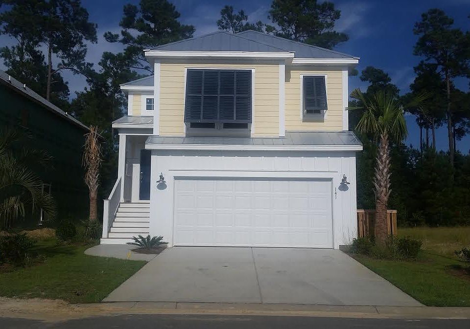Avenel, a coastal aesthetic for the contemporary lifestyle! Metal roof, Bahama style shutters give the home the "Raised Beach" look and feel, proudly proclaiming “I live at the coast!” All living areas of necessity are on the main floor including a very open kitchen/family/dining (trey ceilings optional), laundry, and master suite. The kitchen is open to the living and dining areas with a large island. The secondary living (2 bedrooms/bath/and game room) are on the ground floor along with the 2 car garage. This arrangement is perfect for the kids or guests to have their own space. All exterior glass in this home is Hurricane Rated High impact resistant. Ask me about this important feature!!