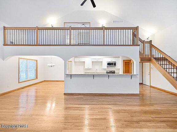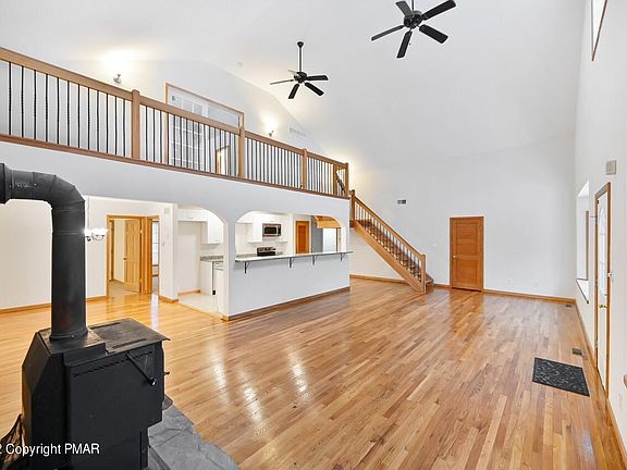 - Description: Hardwood flr, freestand stove, cathedral ceiling