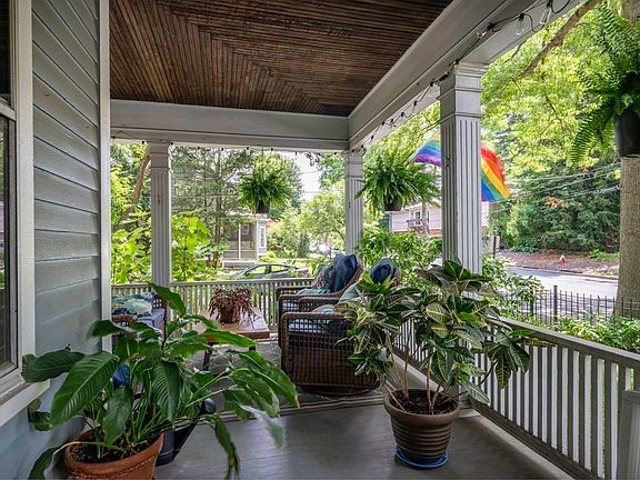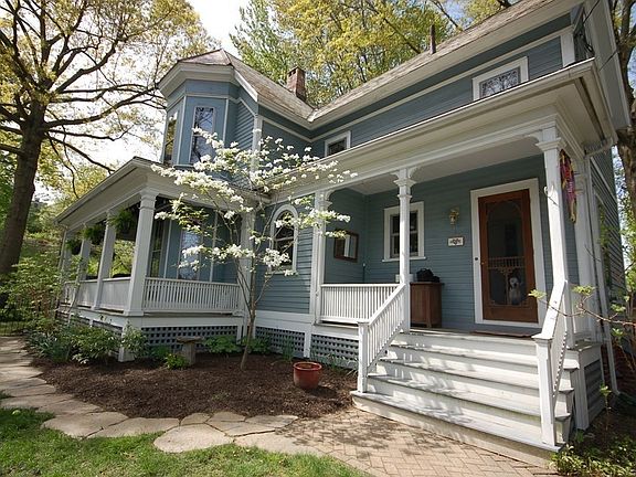 At last, a completely restored, extremely well-maintained Victorian gem just 3 blocks from Main Street! Winner of a Historic Preservation award, this home seamlessly blends Old World charm with modern amenities. Featuring a completely renovated kitchen with granite counters and glass door cabinets, hardwood floors, Bay windows, wrap-around porch and complete mechanical upgrades. A huge DR and LR with Bay windows and gas parlor stove, den with built-in hutch, mud room and 1/2 bath complete the 1st floor. The 2nd floor showcases the charm of pentagon and round windows with stained glass inserts, large bedrooms, completely renovated hall bath. The MBR en-suite bath with custom tiled shower and soaking tub is a true oasis . An efficient gas Viessmann boiler provides radiant floor heat throughout the first floor and two zones of A/C will keep you cool in the summer. Fabulous landscaping with sprinklers, wrought iron fenced yard, newer garage with storage loft. Book your showing today!