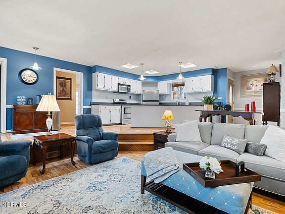 Welcome to this charming 3-bedroom, 3-bath home surrounded by nature. With an open concept floor plan, the residence features a sunken living room that seamlessly connects the living, dining, and kitchen areas and offers an additional office or bonus room. Enjoy the serenity of a secluded oasis among the woods, while still being close to town amenities. The house boasts two primary bedrooms, each with access to porches—one leading to a back deck and the other to a front porch. Outdoor living is enhanced by a wrap-around porch, perfect for taking in scenic views. Set on a .46-acre lot, there's ample space for outdoor activities and entertaining in the fenced-in backyard ensures both visibility and durability, making it ideal for pets. Experience the convenience of a location that harmonizes comfort and nature, offering both tranquility and easy access to shops and schools. Don't miss out on the opportunity to make this your home!