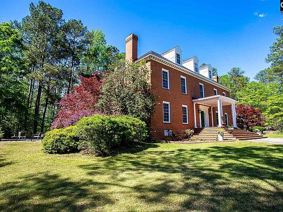 This beautiful all-brick 3 story colonial in Lugoff SC overlooks approx 14 acres of private acreage, complete with manicured 1 acre pond and an in-ground Gunite pool with hot tub. With a 3 car garage and FROG, this unique property features superior energy-efficient features, such as geothermal heating and cooling, tankless water heater, extensive insulation, thermopile windows and well water. An elegant foyer opens to a wide hallway flanked on either side by the formal living area and the library, with a distinctive staircase up to the second floor. Both first and second floors boast 10ft ceilings, heavy moldings, judge's panels and hardwood floors. The expansive first floor, designed with family life and entertaining equally in mind, features formal living and dining rooms, family room, library, office, sun room, large laundry and full bath, as well as a designated breakfast room and well appointed kitchen. The second floor showcases the master suite with its private sitting room and bathroom, and walk-in closet. Bedrooms 2 and 3 and each have walk-in closets and sit either side of a shared bath with access to an additional full bath in the hall. Bedrooms 4 and 5 on the third floor feature hardwood floors, ample storage and a shared hall bath. Offered at $699,000, this property can be viewed as a self-directed 3D tour by clicking on the virtual tour link.
