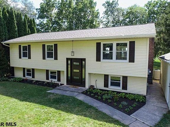Completely remodeled split entry home (just past Pleasant Gap), situated on .42 acre and offers 3 bedrooms, 2 baths and backs to a lovely farm field. Wide planked Maple hardwood flooring wood throughout all of the first floor with the exception of wide wood style porcelain tile in the bathrooms. Modern finishes include black stainless steel appliance in the kitchen, squared baseboard trim throughout, calacatta sol quartz countertops and white cabinetry, recessed lighting stylish light fixtures. Composite decking with two access's - one from the owner's suite and another sunroom. Detached 2 car garage and lower level is waiting to be finished and offers a separate heating/cooling zone. Truly one of a kind.
