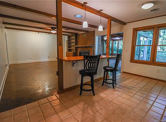 Move in ready, nothing to do but start enjoying this well kept home. No carpet to get dirty, wood and tile floors throughout. Wooded lot, very little grass to mow. Quiet street, fenced in yard for kids and pets. Amazing sun room. All appliances including washer and dryer. Breakfast serving bar. Gas log fireplace. Drive way and sidewalk are made from pavers. New roof-2 yrs old. Very unique home that was custom designed and built by original owners. You will be proud to own the wonderful property.